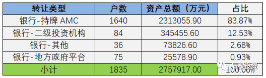 按轉讓及受讓主體類型分(只考慮有明確債權金額部分):