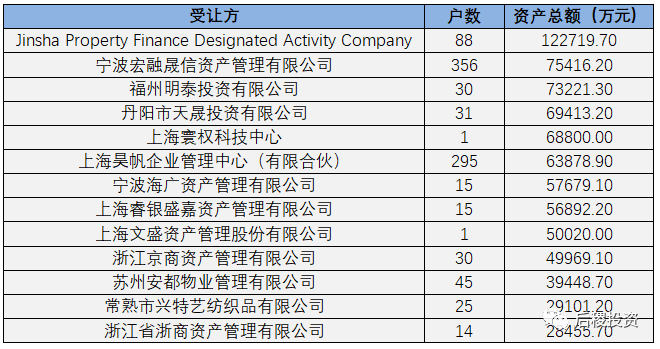 上表所示活躍受讓主體受讓資產比重近50%。在東方前海資產、浙商資產、橡樹以及地方政府資本帶動下,二級投資機構進一步活躍。
