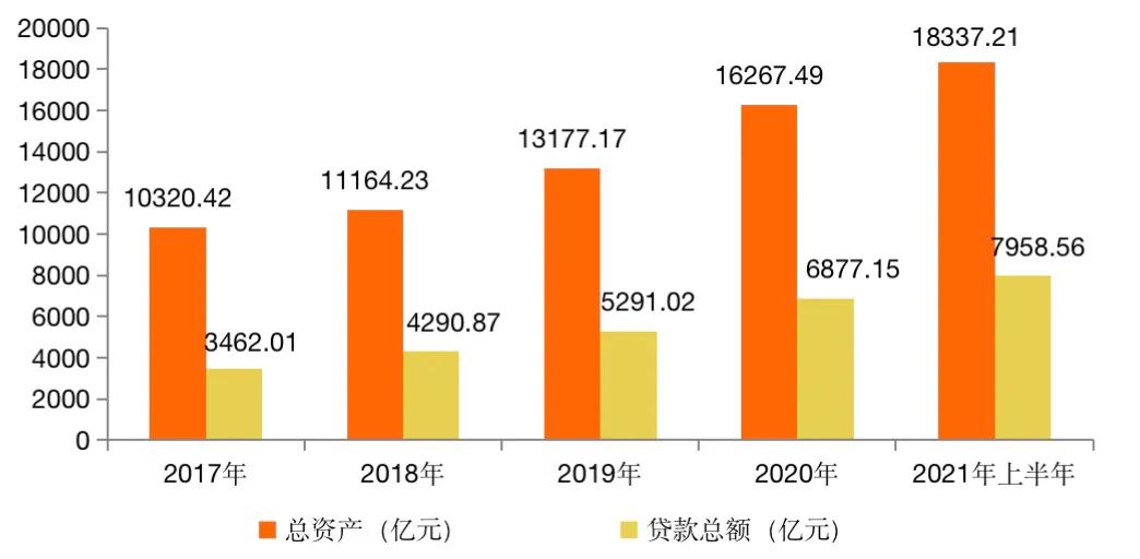 統計數據顯示,寧波銀行的資產規模從2017年的10320.42億元增長至2021年上半年的18337.21億元,增幅達到近八成。與此同時,貸款總額也從3462.01億元增長至7958.56億元,增幅實現1.3倍,可見近年來保持穩健的增長態勢。